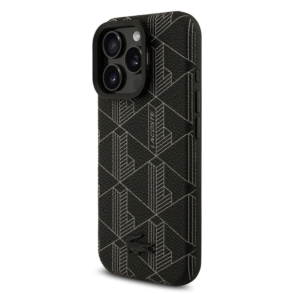 iPhone 16 Pro Max Kılıf Lacoste Orjinal Lisanslı M-safe Şarj Özellikli Standlı PU Deri Karışık Monogram Desenli Kapak