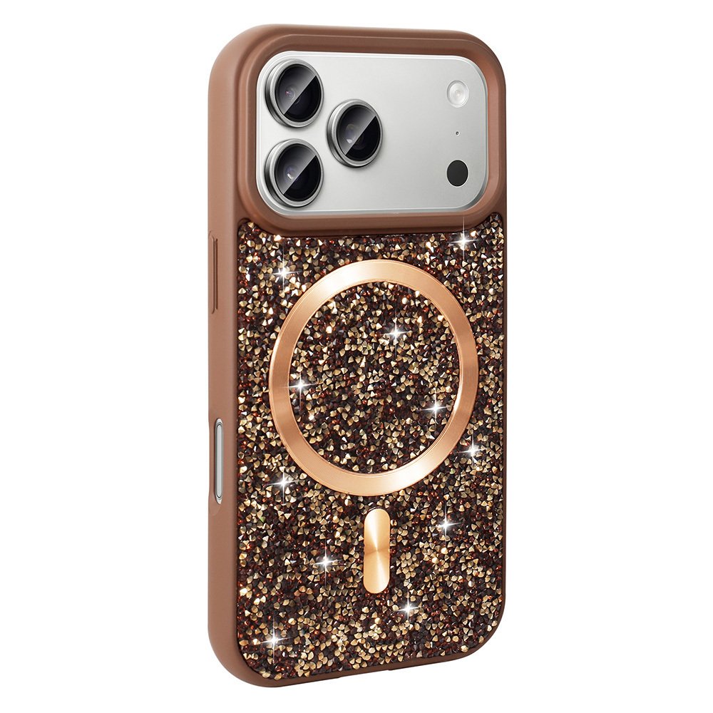 Ceponya Apple iPhone 17 Pro Kılıf Pırlanta Taşlı Tasarımlı Magsafe Şarj Özellikli Mozaik Silikon Kapak
