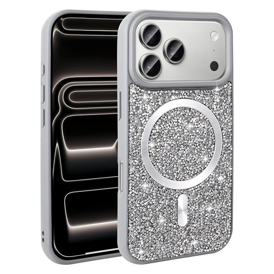 iPhone 17 Pro Kılıf Pırlanta Tasarımlı Magsafe Şarj Özellikli Zore Mozaik Silikon Kapak