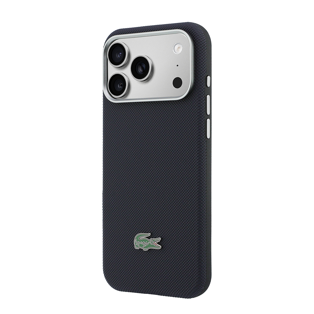 iPhone 17 Pro Max Kılıf Lacoste Orjinal Lisanslı M-Safe Şarj Özellikli PVC Yarı Pike Desenli Arka Yüzey İkonik Timsah Dokuma Logolu Kapak