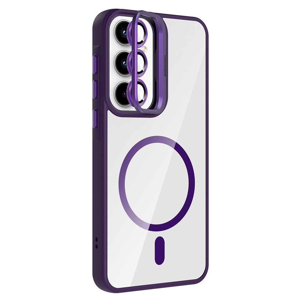 Galaxy A55 Kılıf Standlı ve Kamera Lens Hediyeli M-Safe Şarj Özellikli Zore Etro Kapak