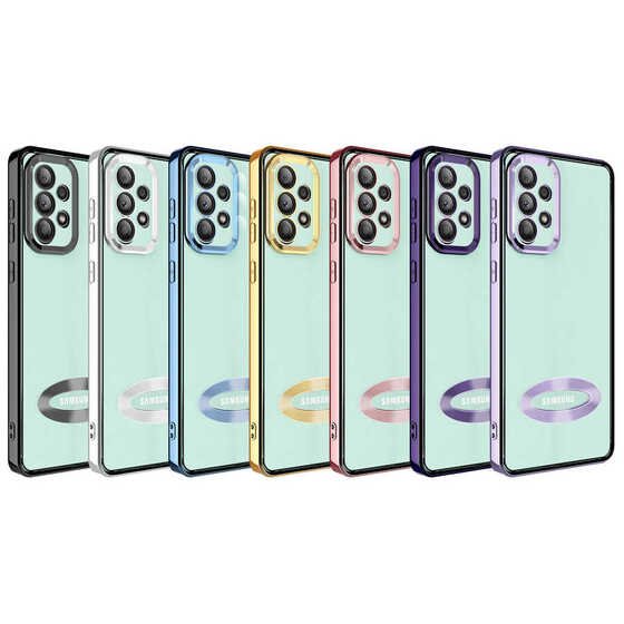 Ceponya Galaxy A73 Kılıf Köşeleri Renkli Şeffaf Kamera Korumalı Silikon Luxury Kapak