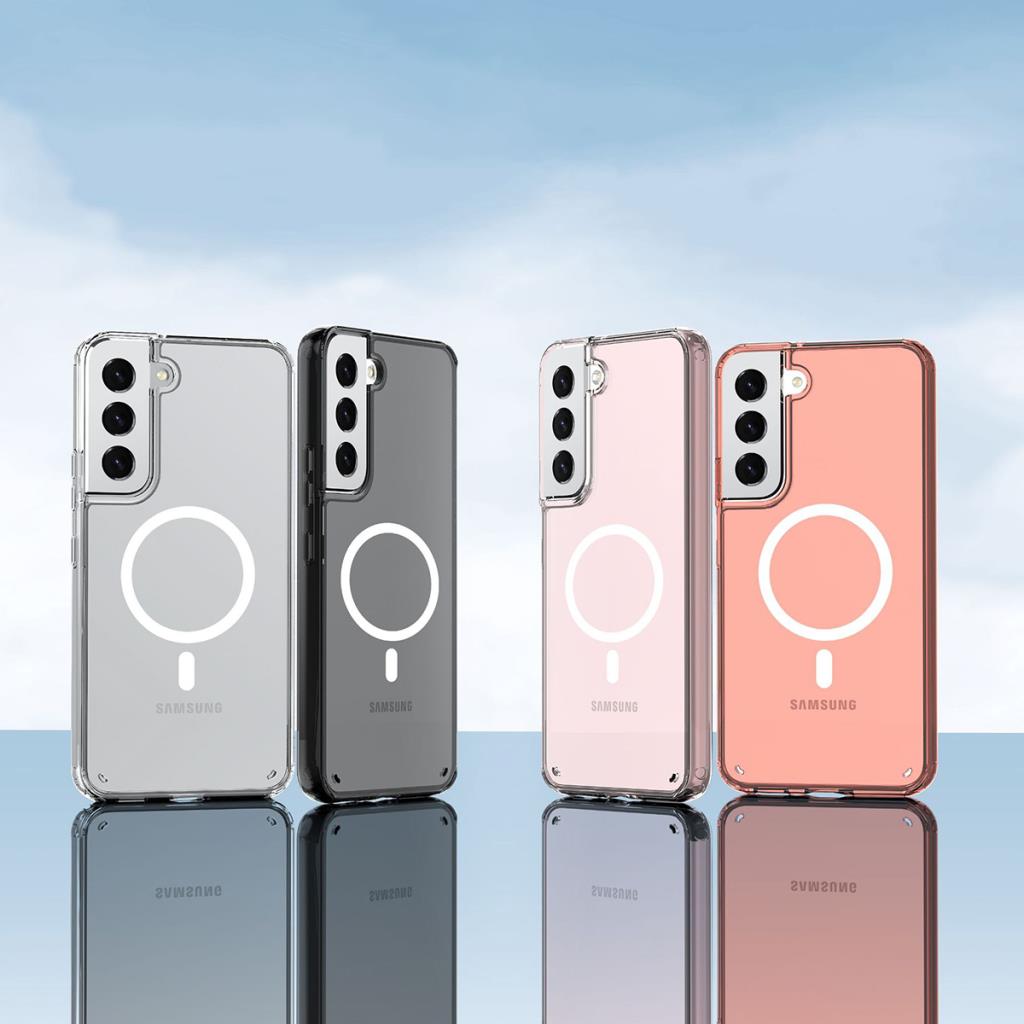 Ceponya Galaxy S22 Plus Kılıf M-safe Şarj Özellikli Şeffaf Sert PC Zore Embos Kapak