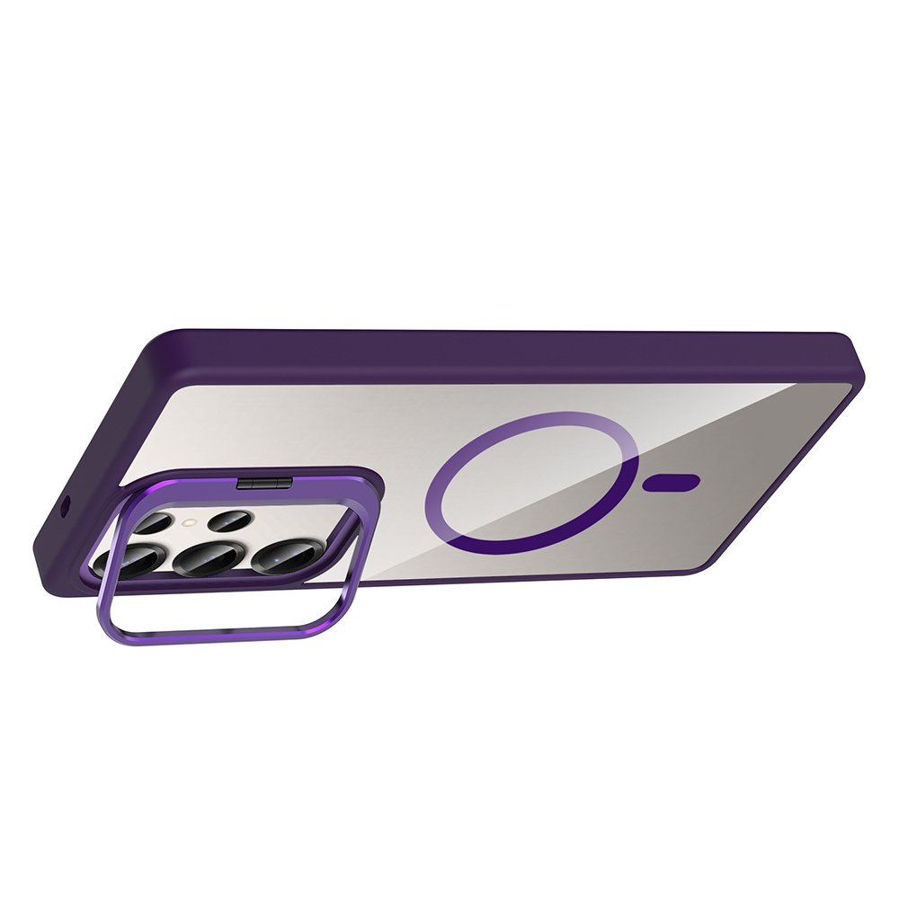 Galaxy S25 Ultra Kılıf Standlı ve Kamera Lens Hediyeli M-Safe Şarj Özellikli Zore Etro Kapak