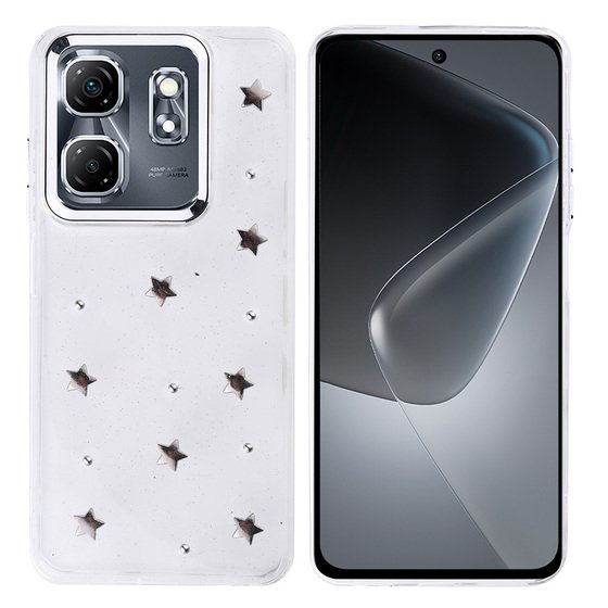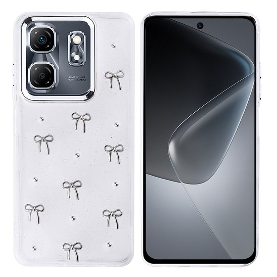 Fiyonk, kiraz, yıldız ve lale detaylarıyla zarafeti, simli şeffaf tasarımla birleştiren bu kapak, telefonunuzu sadece korumakla kalmaz, aynı zamanda ona benzersiz bir stil katar. Günlük kullanımda dikkat çeken estetik tasarımı, cihaza özel uyum sağlayarak telefonunuzun şıklığını ön plana çıkarır.