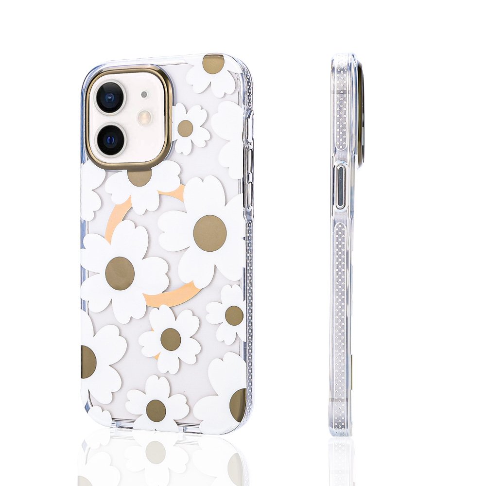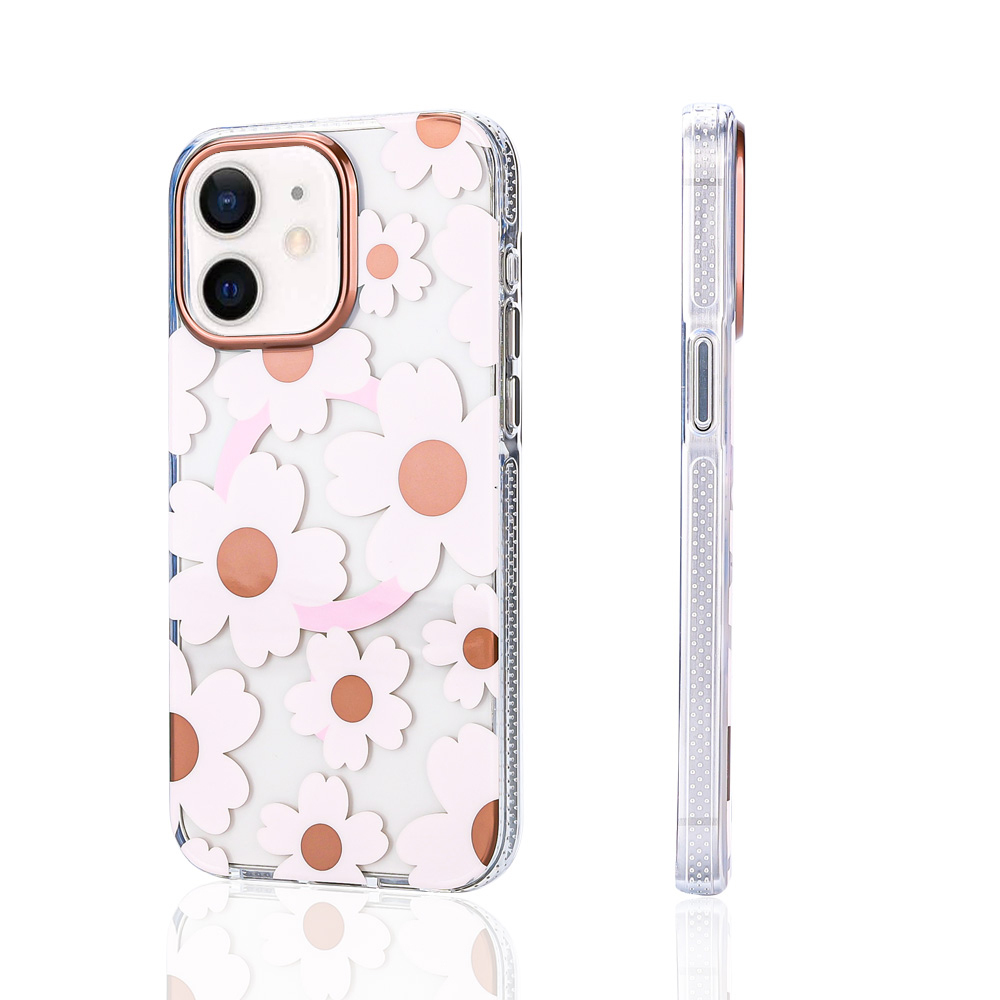 Ceponya iPhone 12 Kılıf Magsafe Şarj Özellikli Papatya Desenli Kapak