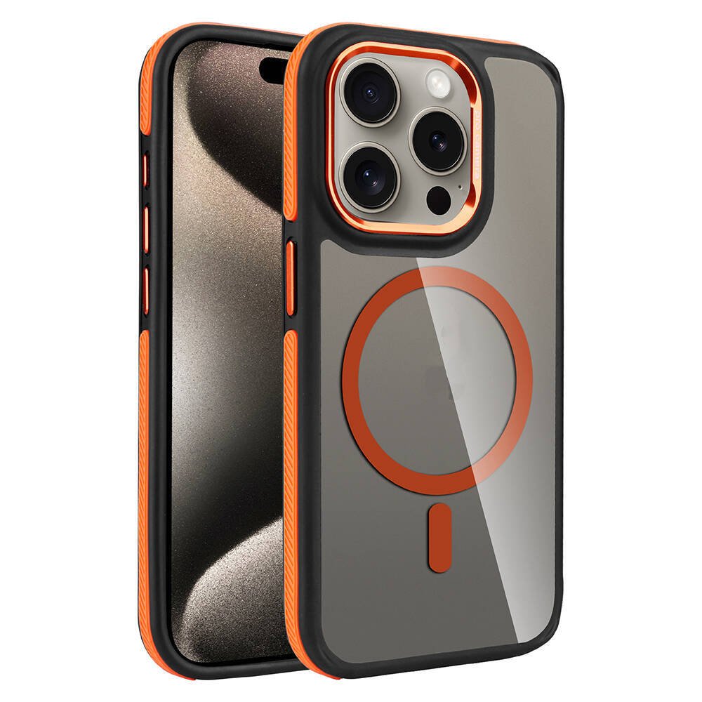 Ceponya iPhone 15 Pro Kılıf Magsafe Şarj Özellikli Mat Görünümlü Orange Style Kapak