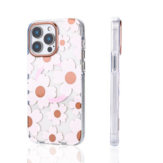 Ceponya iPhone 15 Pro Max Kılıf Magsafe Şarj Özellikli Papatya Desenli Kapak