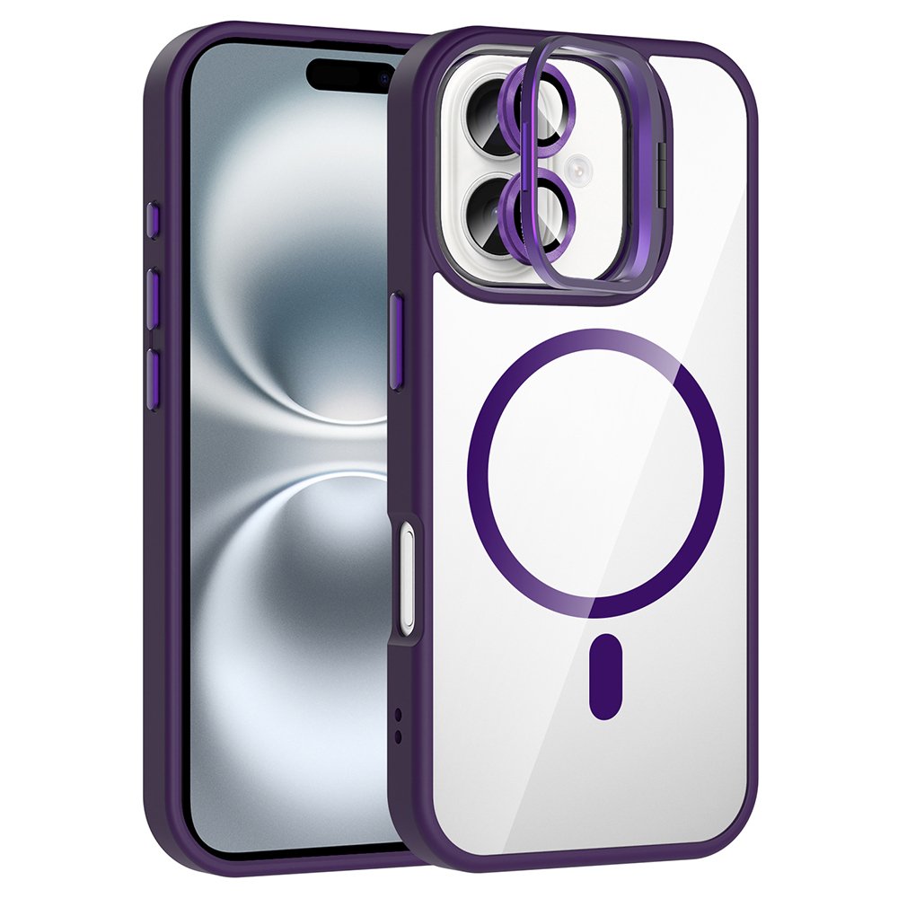 iPhone 17 Kılıf Standlı ve Kamera Lens Hediyeli M-Safe Şarj Özellikli Zore Etro Kapak