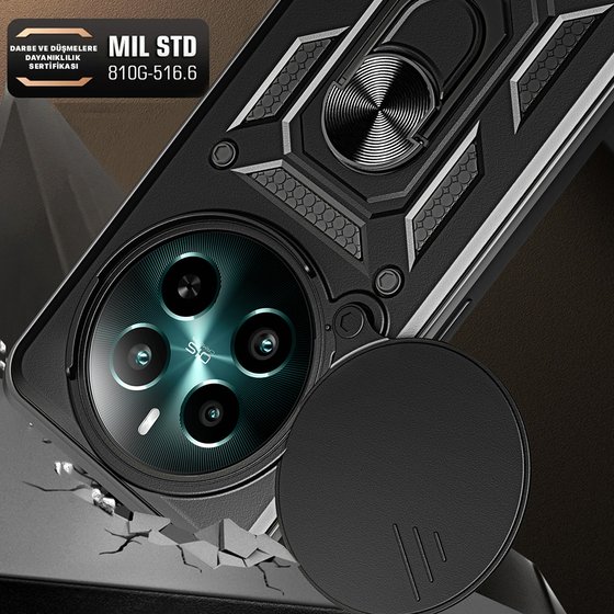 Ceponya Realme 12 Kılıf Magnetik Standlı Kamera Korumalı Sürgülü Vega Kapak