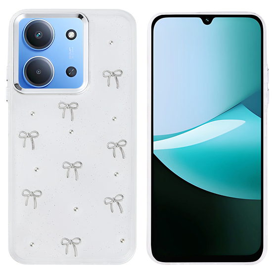 Fiyonk, kiraz, yıldız ve lale detaylarıyla zarafeti, simli şeffaf tasarımla birleştiren bu kapak, telefonunuzu sadece korumakla kalmaz, aynı zamanda ona benzersiz bir stil katar. Günlük kullanımda dikkat çeken estetik tasarımı, cihaza özel uyum sağlayarak telefonunuzun şıklığını ön plana çıkarır.
